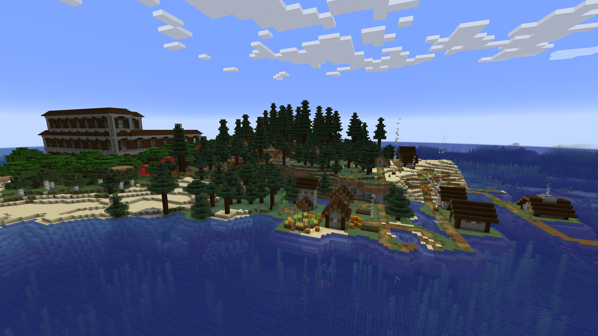 This Minecraft island seed, an incredible find by Redditor u/stofix_, provides one of the most challenging and unique places to start your game. Yup, it’s only a small island… But it houses a pretty large Taiga village and a Woodland Mansion. Thanks to the Taiga and Dark Forest biomes, you won’t suffer from a shortage of trees.