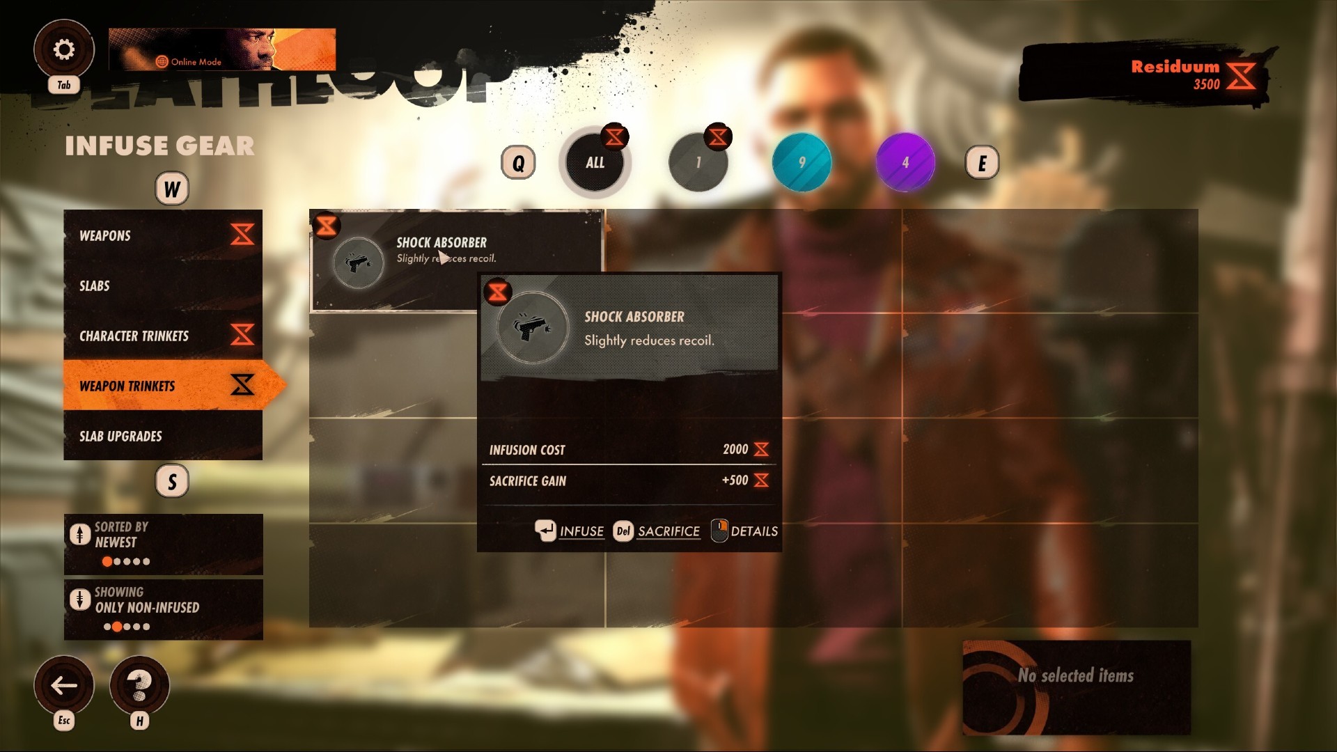 Every time you get sent back to the beginning of the loop, you lose all the equipment you picked up on your previous attempt. However, if you infuse them with residuum, you can carry weapons and powers forward with you, even after you run out of Reprise uses and get sent back to the start of the day. Essentially, it allows you to gradually accumulate resources, kitting you out for subsequent attempts. If you wish to figure out more about residuum, be aware that there are mild spoilers ahead.