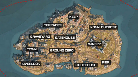 This large map contains a number of unique POIs, some of which appear in Modern Warfare 3 maps. The huge map was the first to introduce horizontal ziplines to Warzone as a crucial way of getting around fast. If that doesn’t do it for you though, there’s always the train that travels through many of the POIs below.