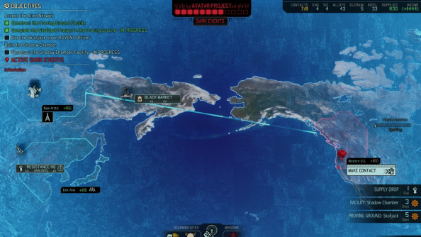 There’s a skeletal ruleset at work. Every month you’re given the opportunity to prevent one of three dark events: ADVENT schemes that might improve, for instance, their ammo, armour or ability to call down reinforcements. Meanwhile, separate timers count down the weeks til the next retaliation event – gruelling fights which can lose you regions – and the installation of new alien facilities. You’ll want to assault as many facilities as you can, because they expedite the progress of the Avatar project: a covert alien operation that means campaign failure if it’s completed.